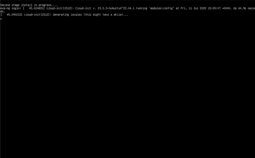 What feels like a never ending barrage of reboots we are finally here. We can now login, with the default username of root and password of eve. These are the steps to get eve setup