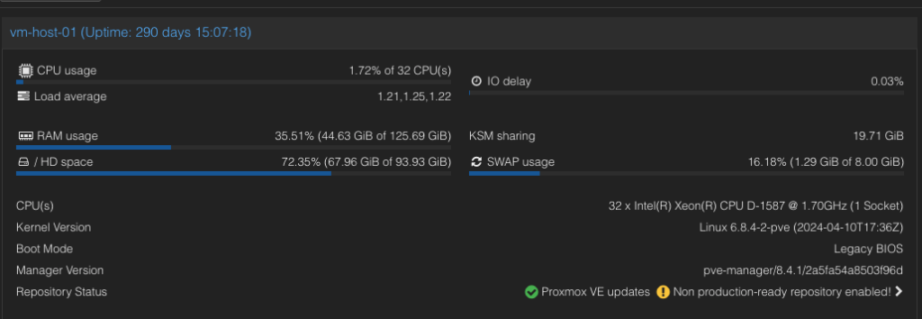 Yes, I know, it’s been up for 290 days. I’ll reboot it sometime soon!