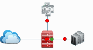 At its core, a firewall implements a simple but effective set of rules. Some data packets are allowed (green) and others are denied (red). The below image depicts this